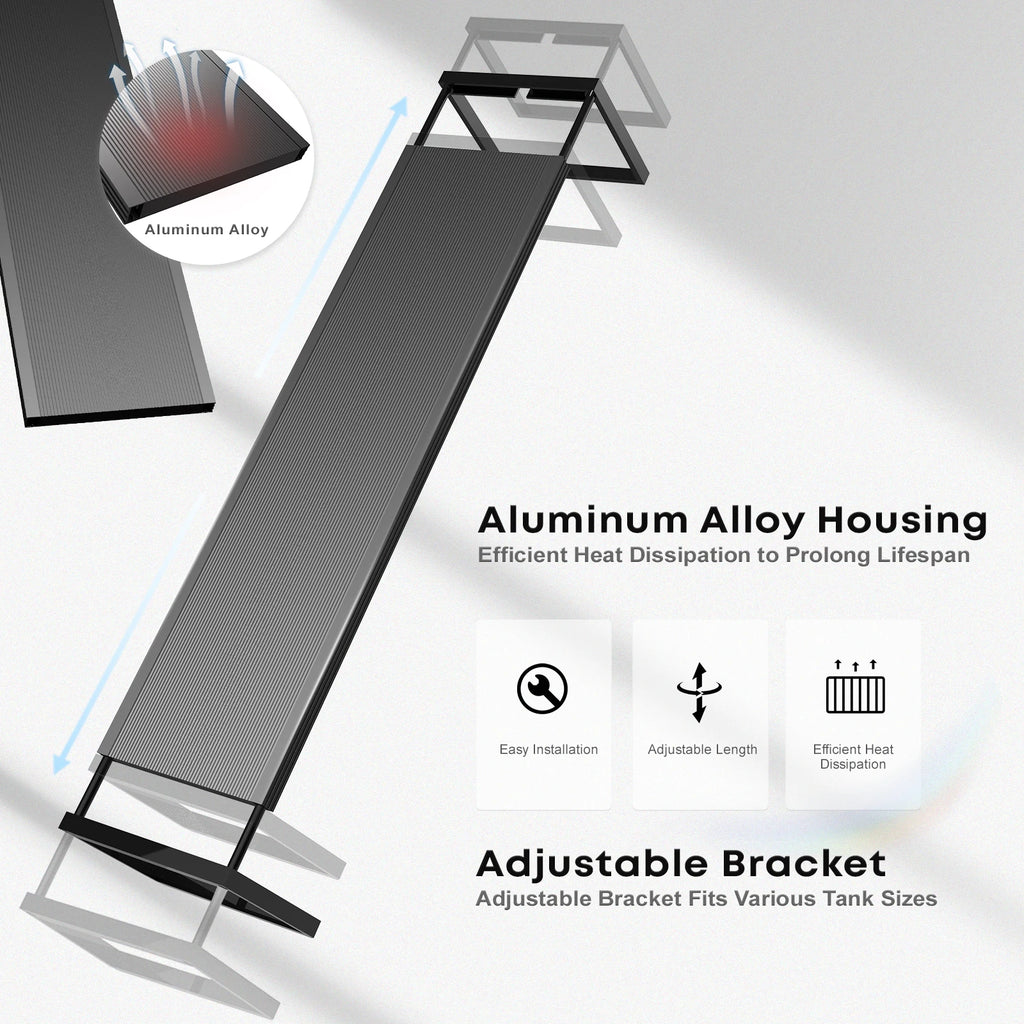 About BRITE's LEDsExtendable BracketThe bracket allows for single-sided extension from 0 to 12cm (maximum 24cm for both sides), catering to various tank sizes. Featuring MINI screw locking for added safety and convenience. |