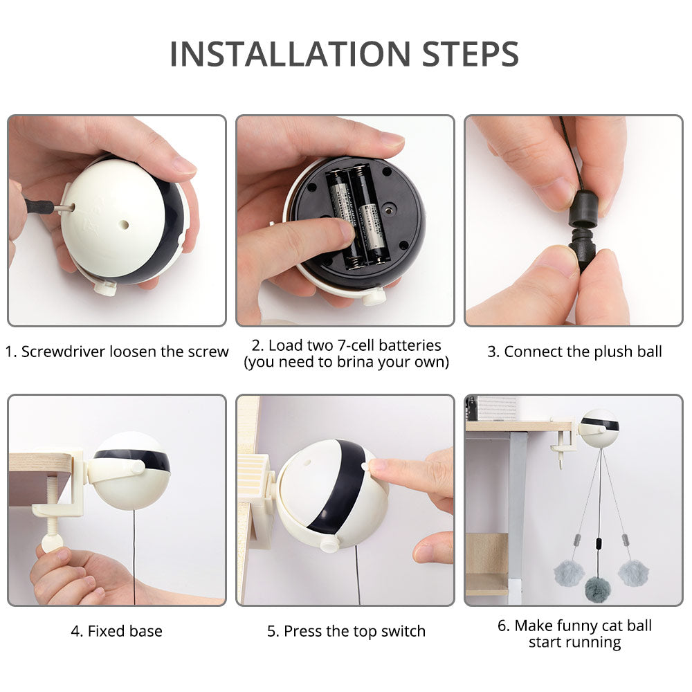 The cat can play by itself without affecting your work. (this product needs to be equipped with two AAA batteries, but product does not contain battery).