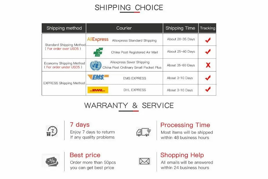 5. Due to stock status and time differences, we will choose to ship your item from our first available warehouse for fast delivery.