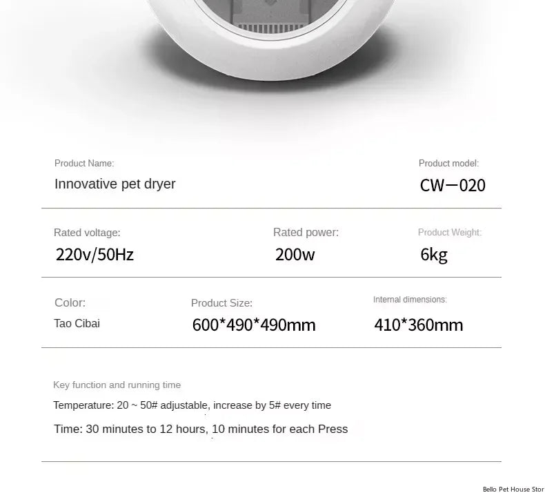• Name : Cat Dryer Smart Pet Drying Box Household Fully Automatic Silent Small Dog Bathing and Hair Blowing Machine Pet Hair Dryer