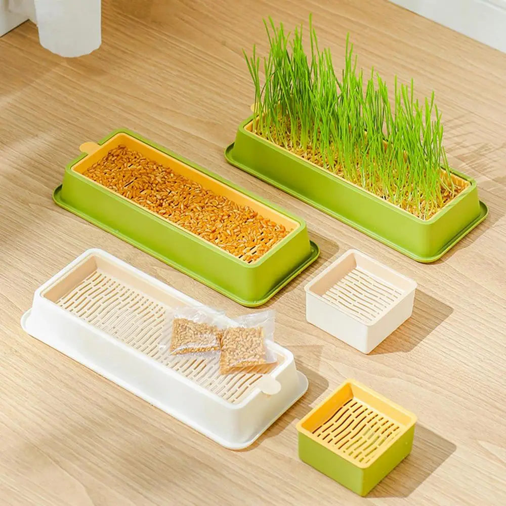 2.PP Material: This cat grass planter is crafted from superior PP material that's durable, odorless, and food-contact safe. It won't easily deform and provides a worry-free way to grow healthy, fresh cat grass for your furry friend without exposure to harmful substances.