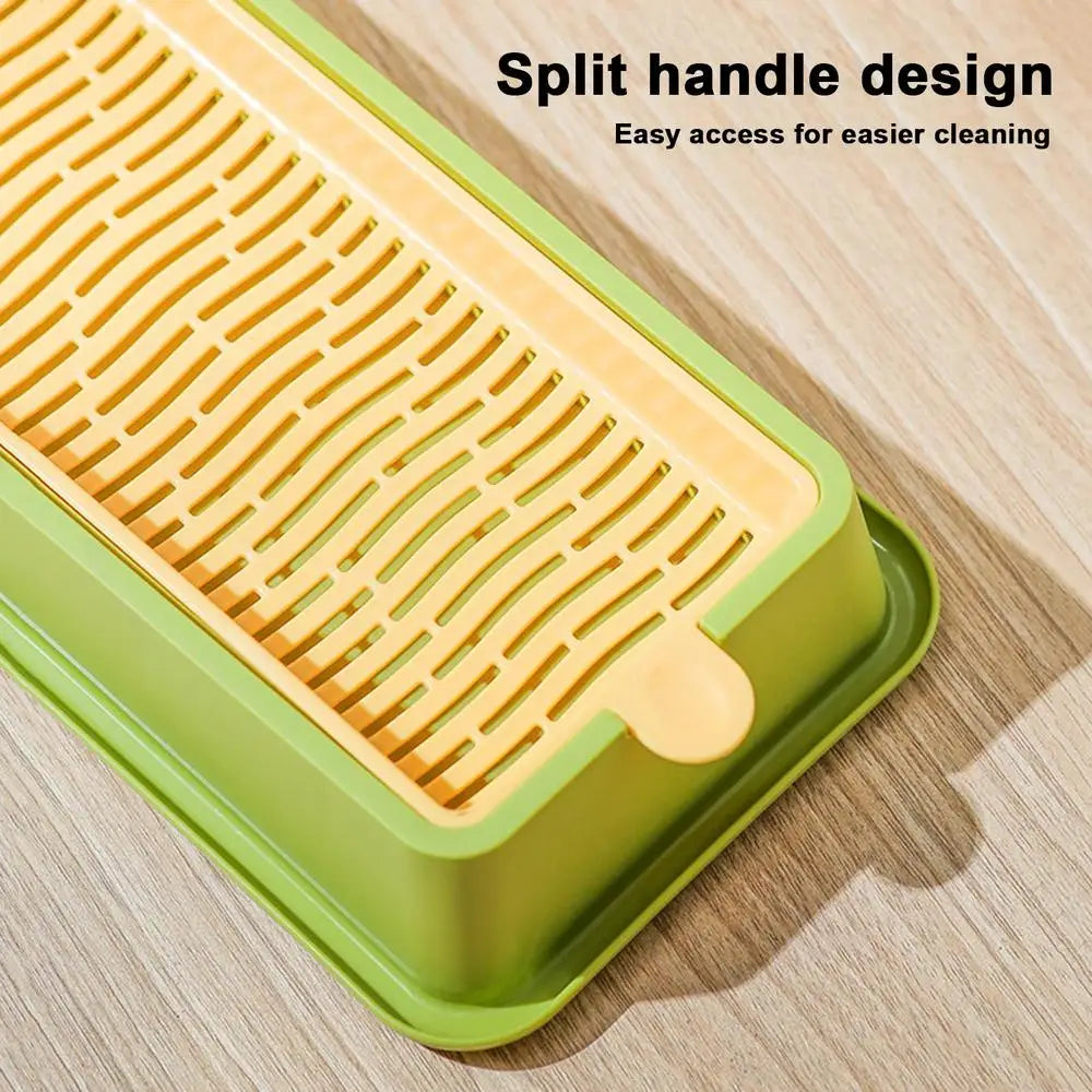 1.Distinctive Layered Feature: Cut your cat's grass with ease while maintaining freshness and hygiene with our cat grass planter. The plant layer and water mop basin are detachable, and its layered design ensures even growth. Effortless water changes and easier grass cutting make it a perfect addition to every cat lover's home.
