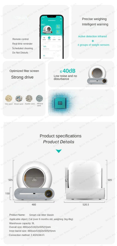 • Name : Pet Smart Litter Box Fully Automatic Cleaning of Electric Large Cat Toilet Deodorizing Fully Enclosed Automatic Cat Litter Box