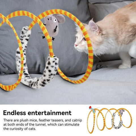 Cat Spring Toys Multifunctional Cat Tunnel Tube Large Foldable Cat Tube Tunnel With Feather Mouse Toys Cat Toy Springs Indoor