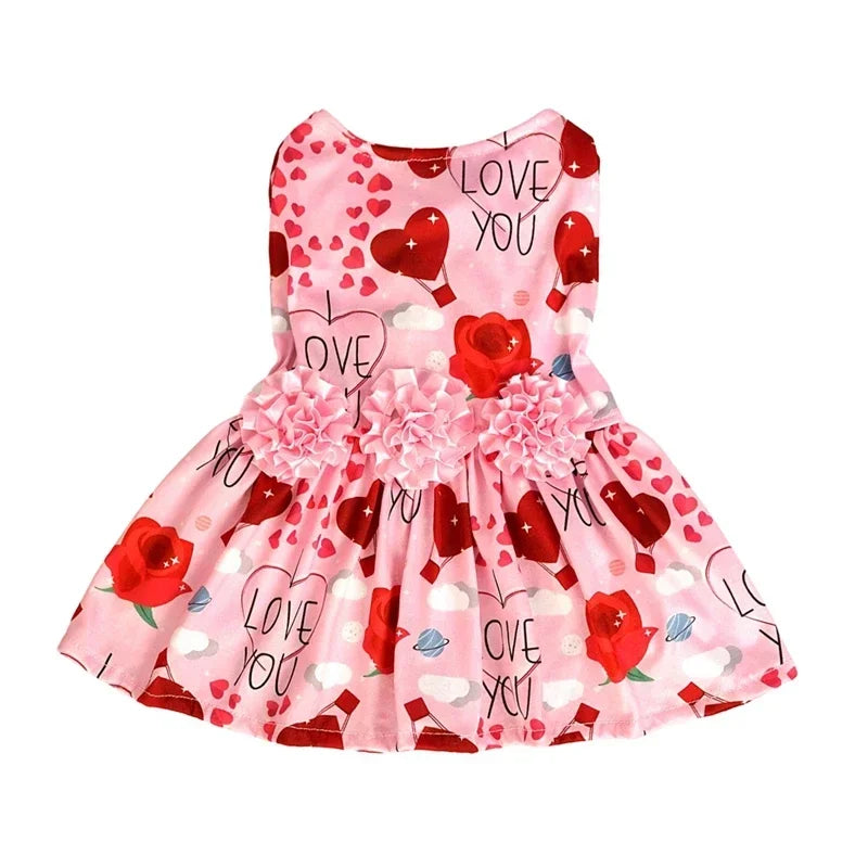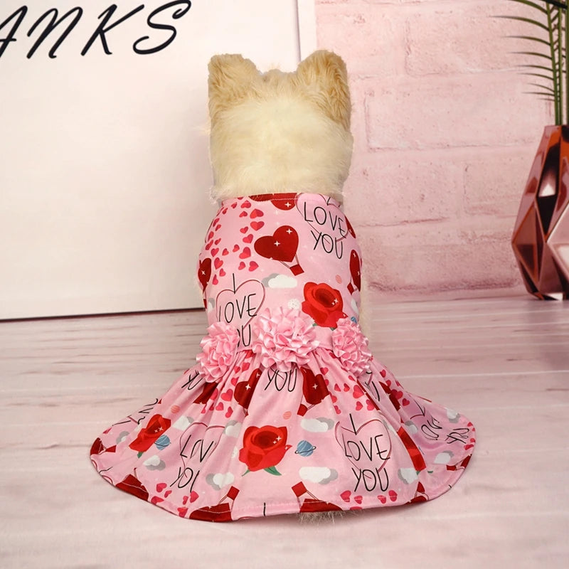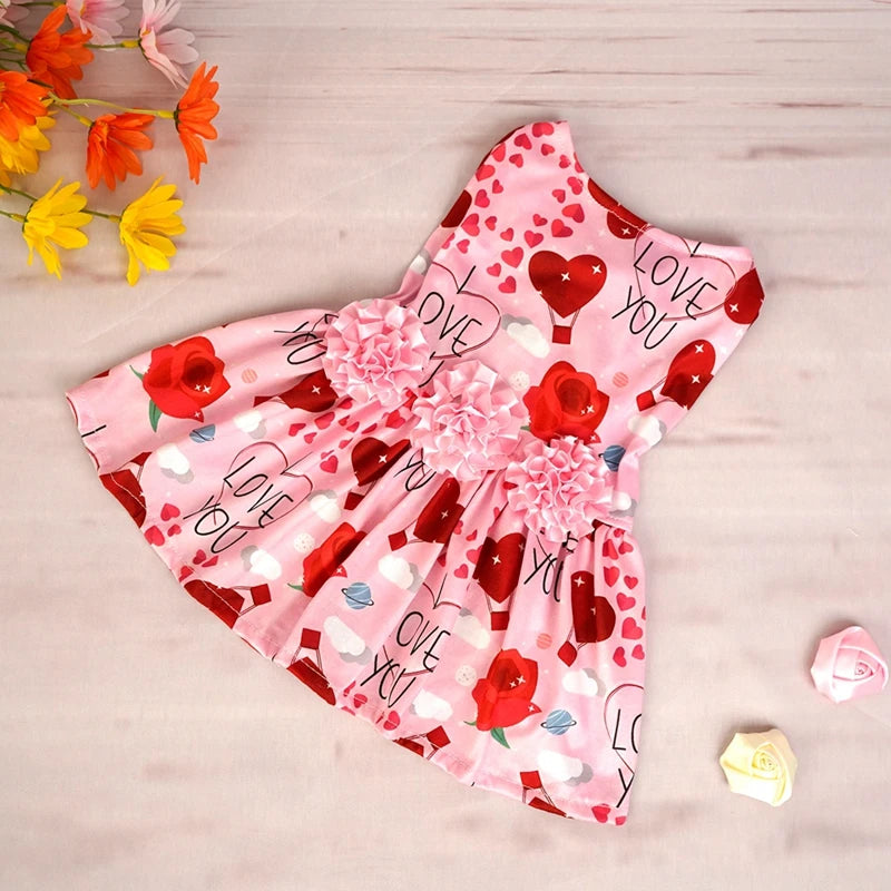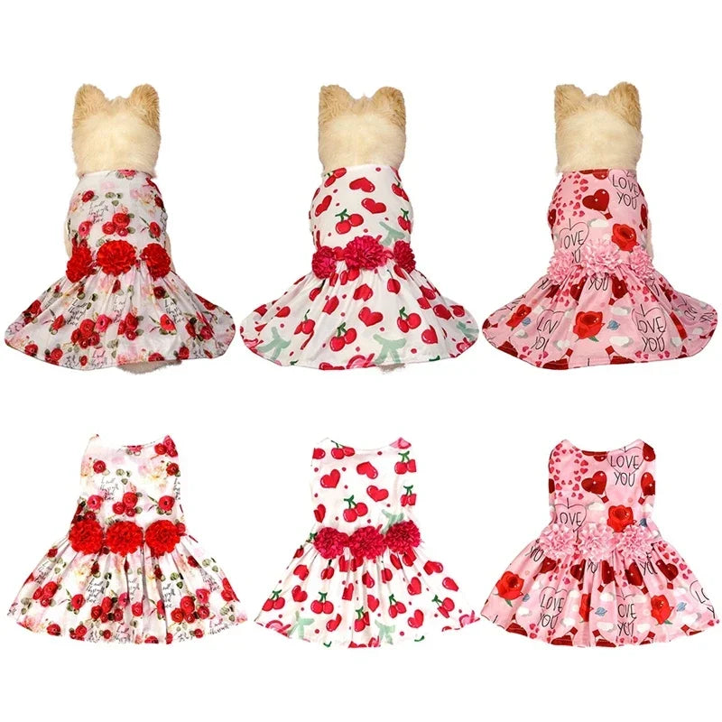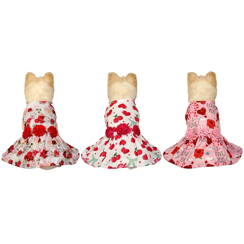 • Name : Dog Dress Pet Clothes Spring Summer Puppy Skirt Princess Dress Fashion Flower Heart Lovely Pattern Sleeveless Dog Dresses