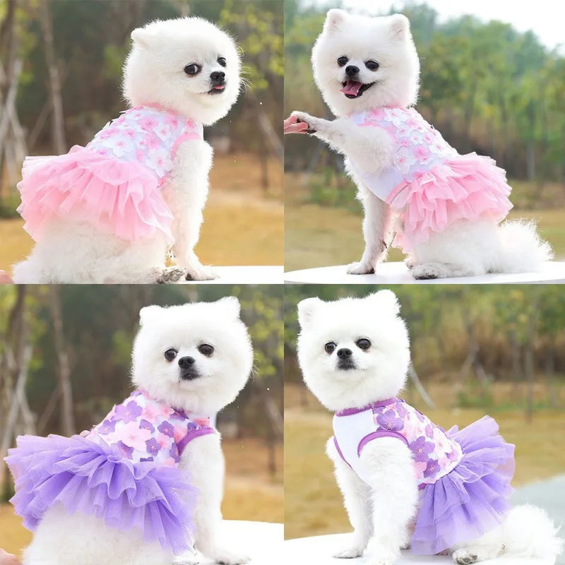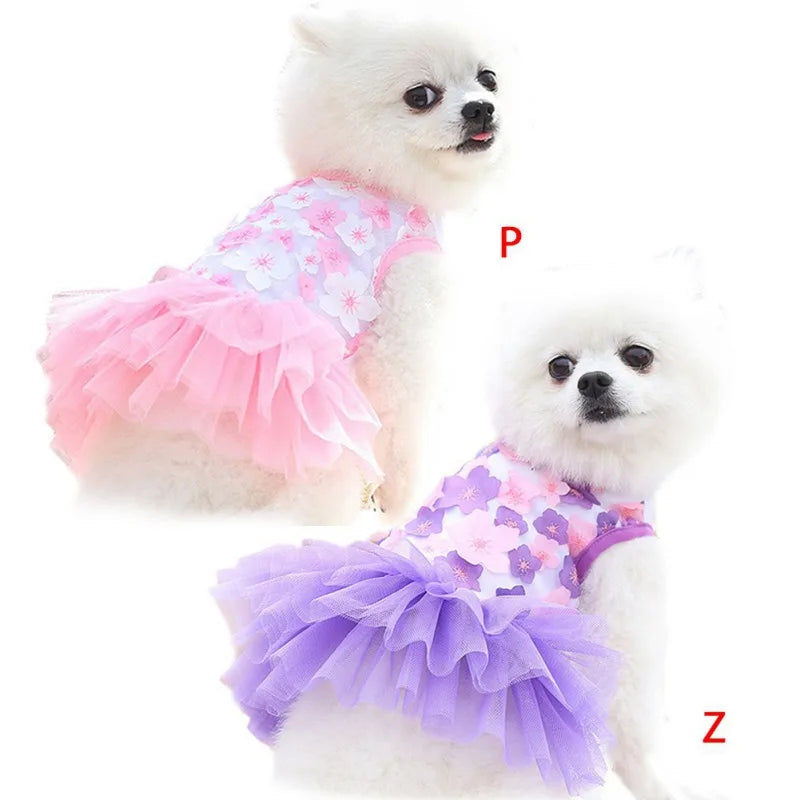 Dog Dress Pet Princess Dress Sweet Puppy Dresses Summer Pet Floral Gauze Dog Vest Apparel for Dogs and Cats