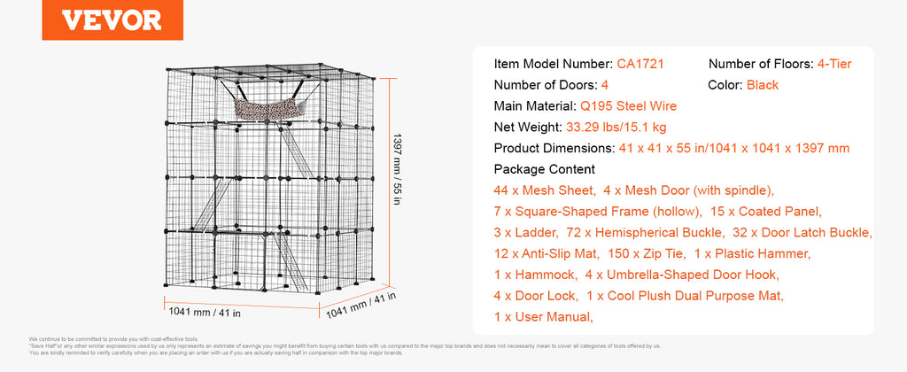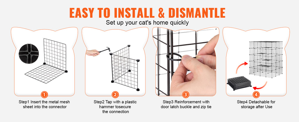 DIY Assembly: You can assemble the cat villa according to different scenes and sizes in your home at will. Follow the steps of the instruction manual, no additional tools are needed, and the assembly can be completed by a single person. When not in use, the cat cage can be disassembled for easy transportation and compact storage.