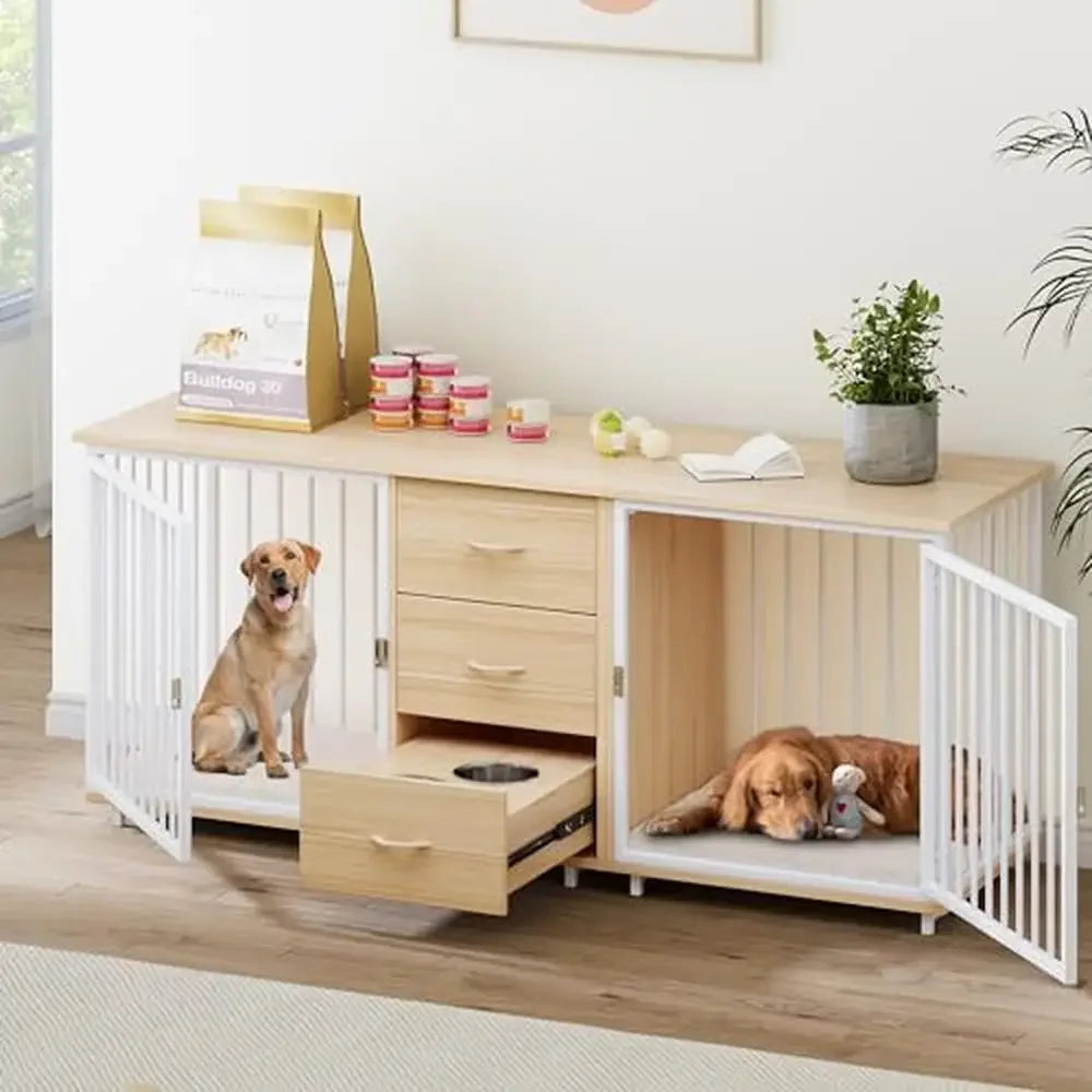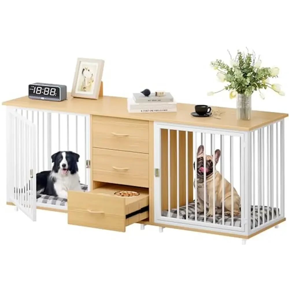 74" Multi-storage Dog Cage: The dog crate furniture comes with 2 large drawers to conveniently store dog food; Can be used as TV cabinets and side tables while the wide top accommodates various items or decorations to tidy up your home and meeting the needs of you and your dog