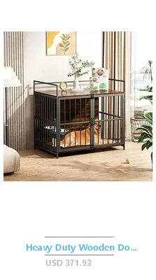Sturdy Ironwood Structure: This large indoor dog cage is made with premium wooden panels and metal pipes so that it’s more comfortable, durable and easier to clean compared to traditional iron dog cage. Won’t be easily damaged by mischievous, energetic or nervous dogs; The top board has maximum load-bearing capacity of 110lb