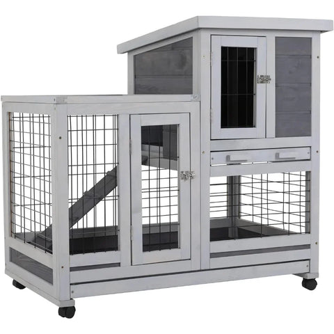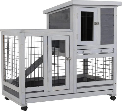 Rabbit Hutch Indoor and Outdoor Rabbit Cage 37 Inch Wide Wooden Hutch House Guinea Pig Cage with Wheels Rolling Larg