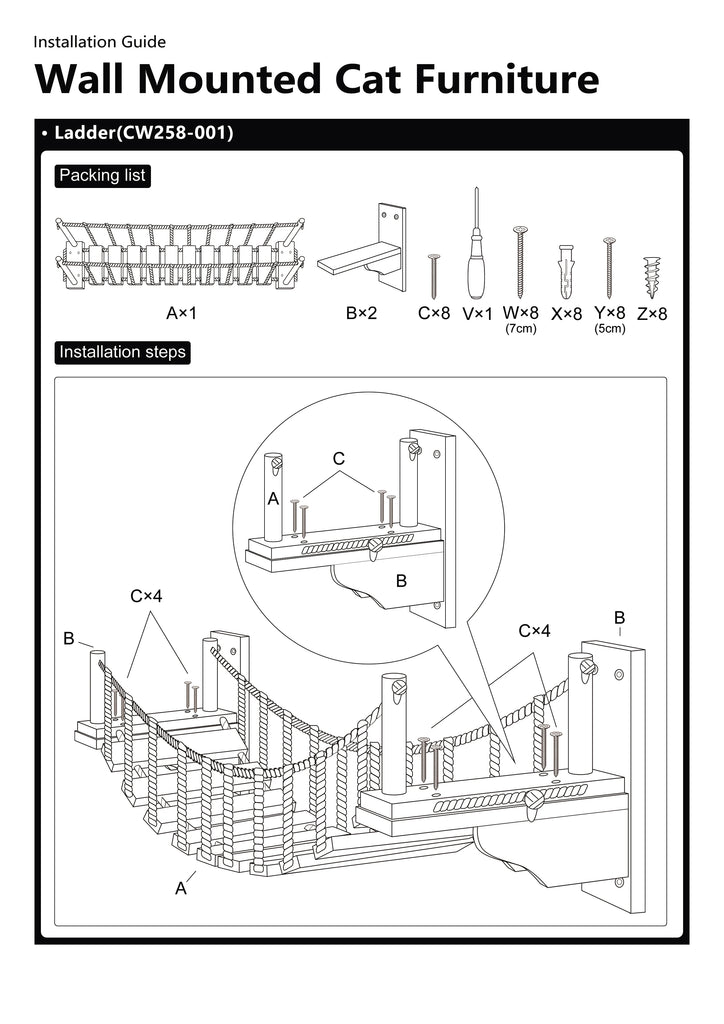 With the instructions provided of the package, you can attach the cat furniture to the wall by screws and wall anchors easily. We will offer two types of screws for wooden and concrete walls, perfectly considering your needs