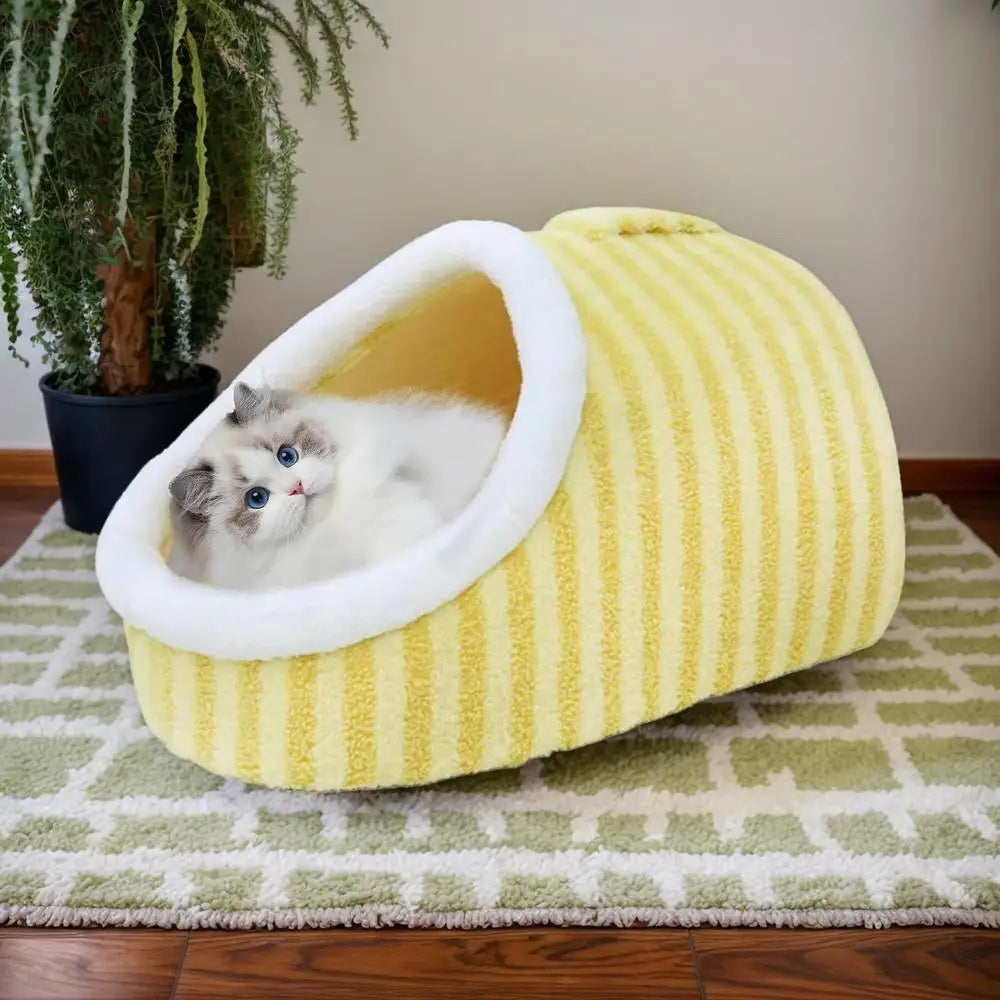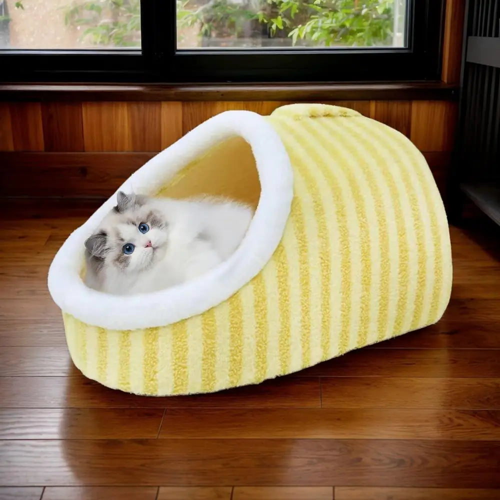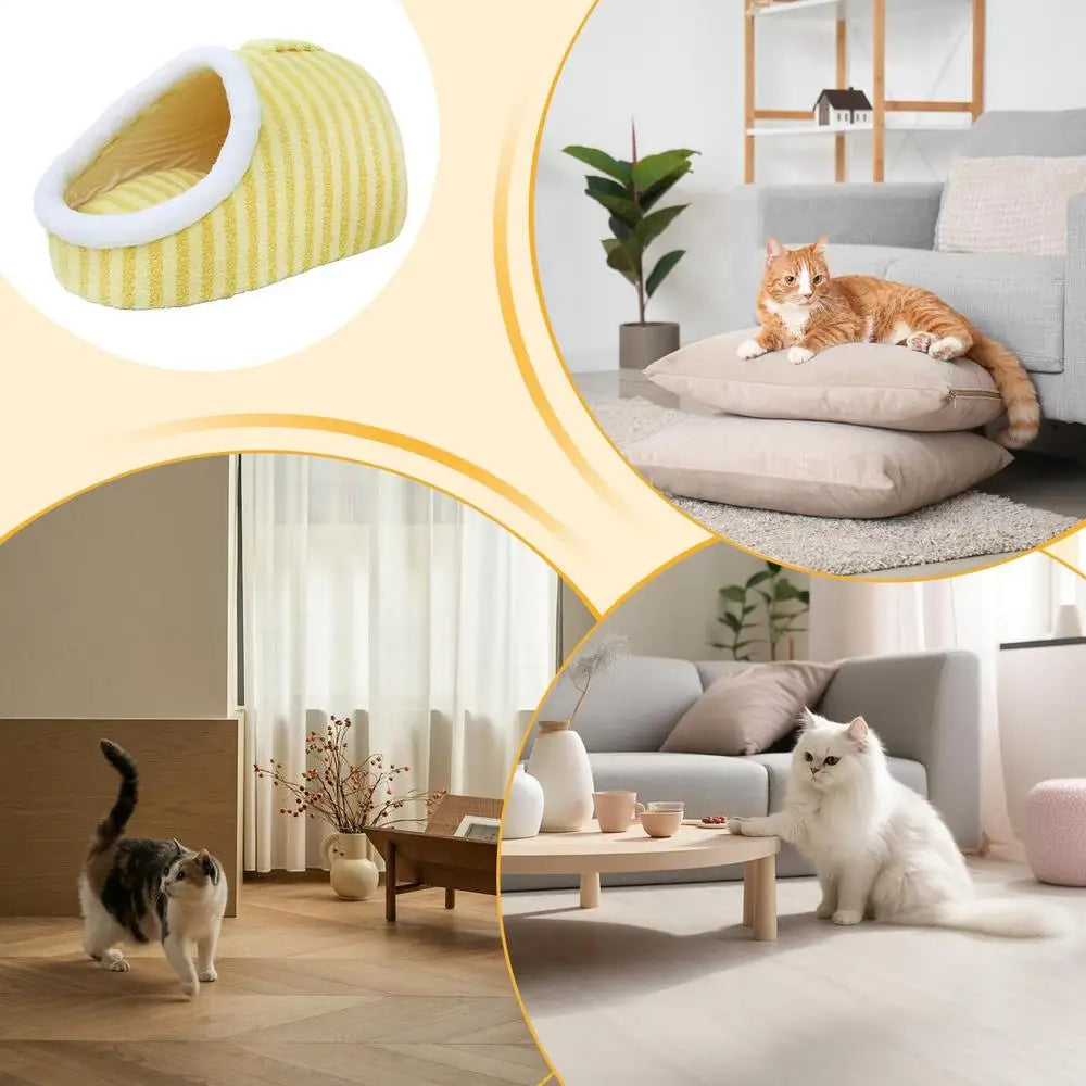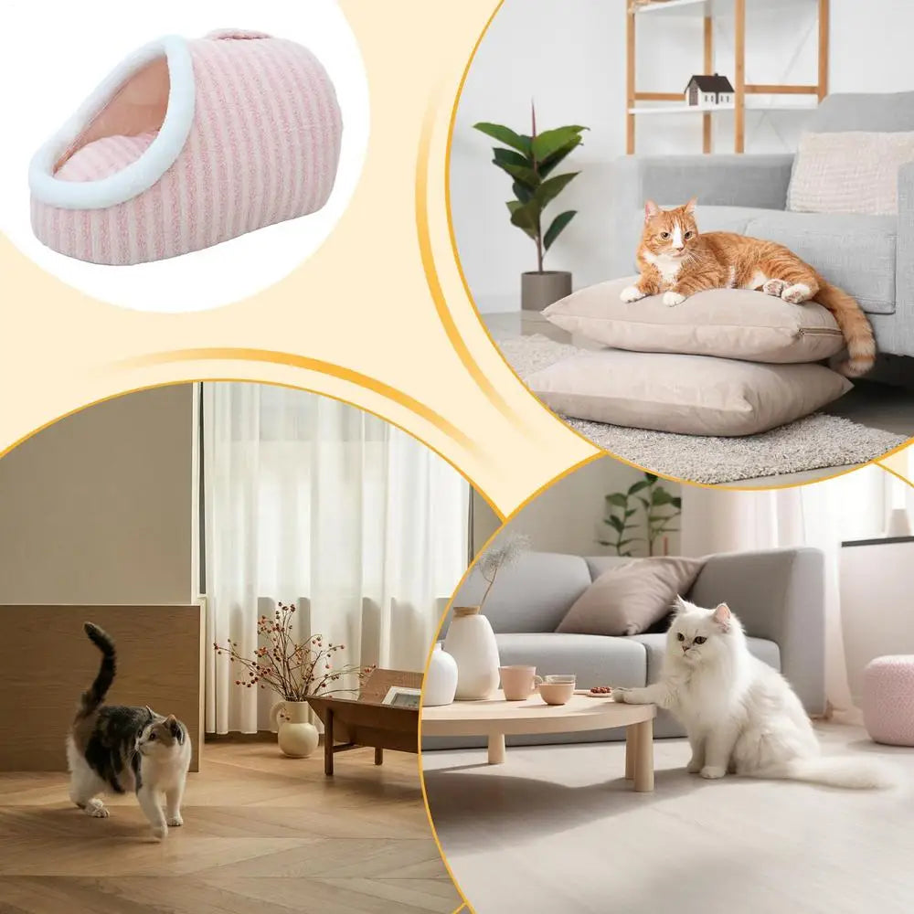 Our slipper cat bed is made of plush fabric that stays firm and keeps pets feeling secure and content. The removable and washable mat makes cleaning a breeze. Lightweight and cozy, perfect for all cats.
