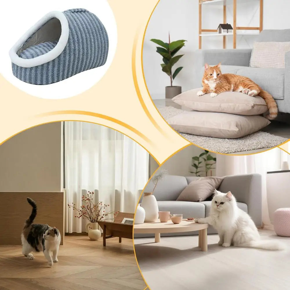 2.Enhanced Comfort: Your kitten's safety is our top priority. Our cat cave bed slipper boasts a non-slip bottom and sturdy construction that make sures it stays firm and secure, offering your cat a worry-less lounging experience