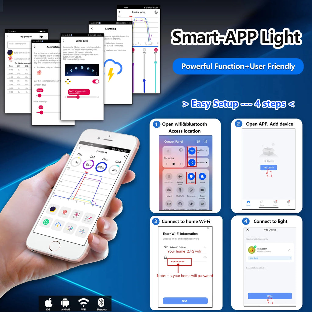 WiFi Support: Android/iOS (2.4GHz Wi-Fi network )